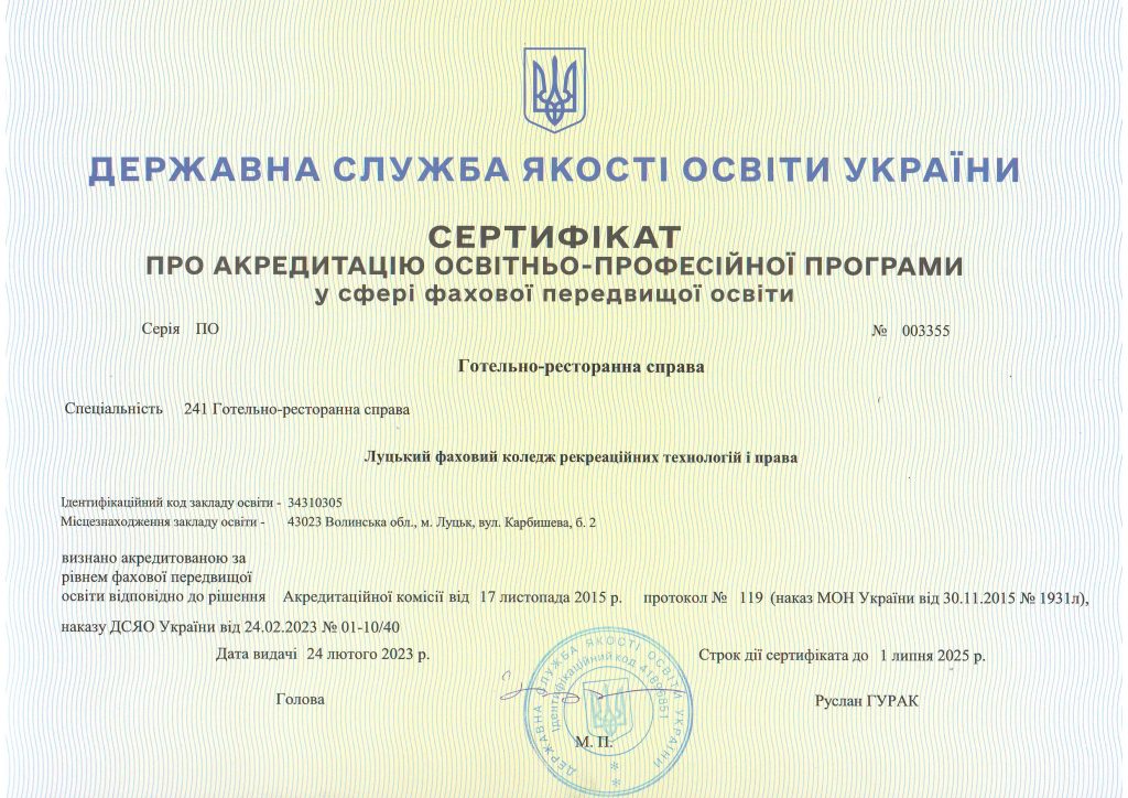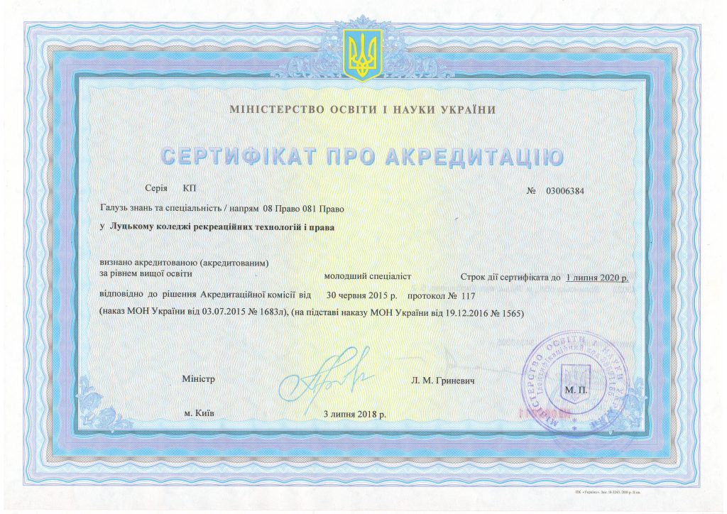 Ліцензії, сертифікати про акредитацію